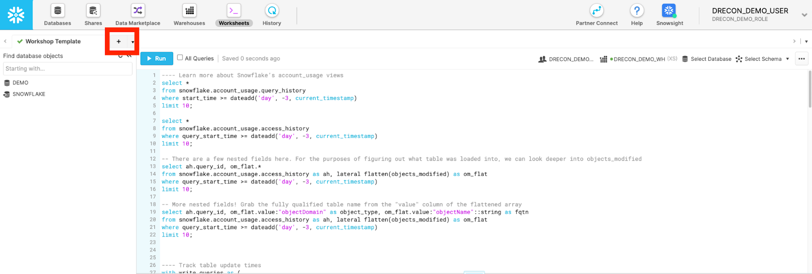 Every Snowflake account exposes account-level metadata in views within the snowflakeDatabase. This information allows you to understand what's going on in your Snowflake environment and gives you important insights into what queries are running and what objects they are affecting.